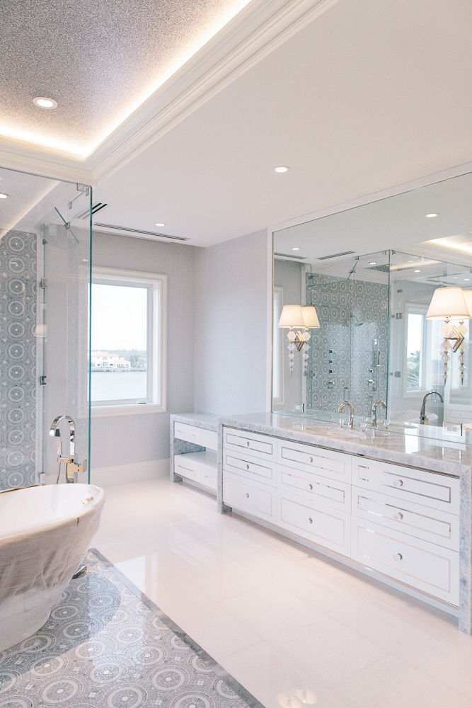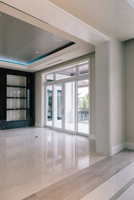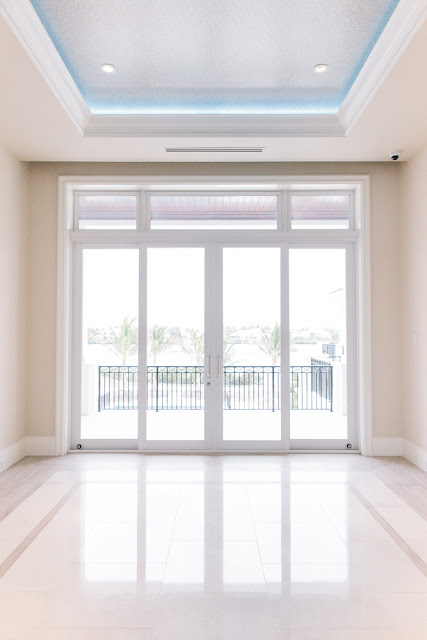 We continued the tour into the living and dining rooms (pictured below) and marveled at the natural light coming in through the grandiose windows facing the inter-coastal.