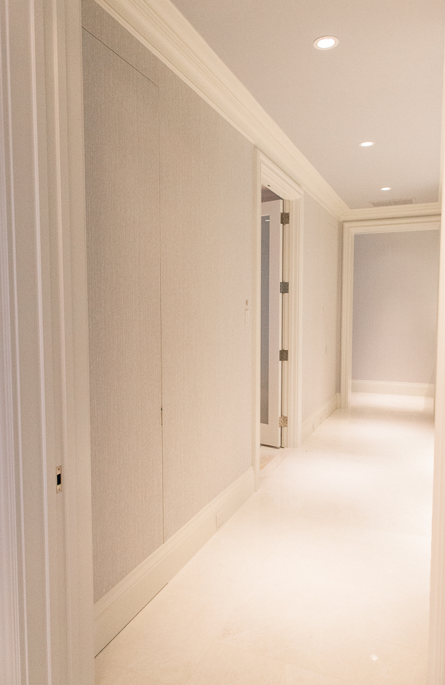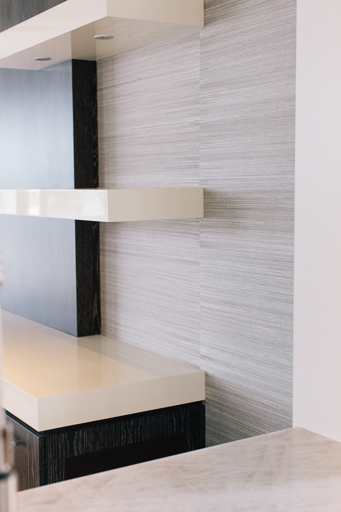 Design arrangements for wallpaper installs is a sagacious approach to using the same wallpaper for numerous rooms in different layouts. Our clients were able to savor their contemporary palette by repeating the wallpaper often without it seeming monotonous.