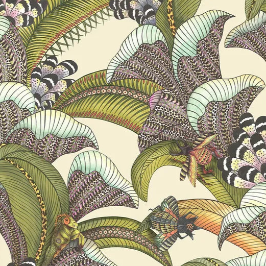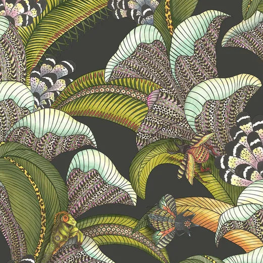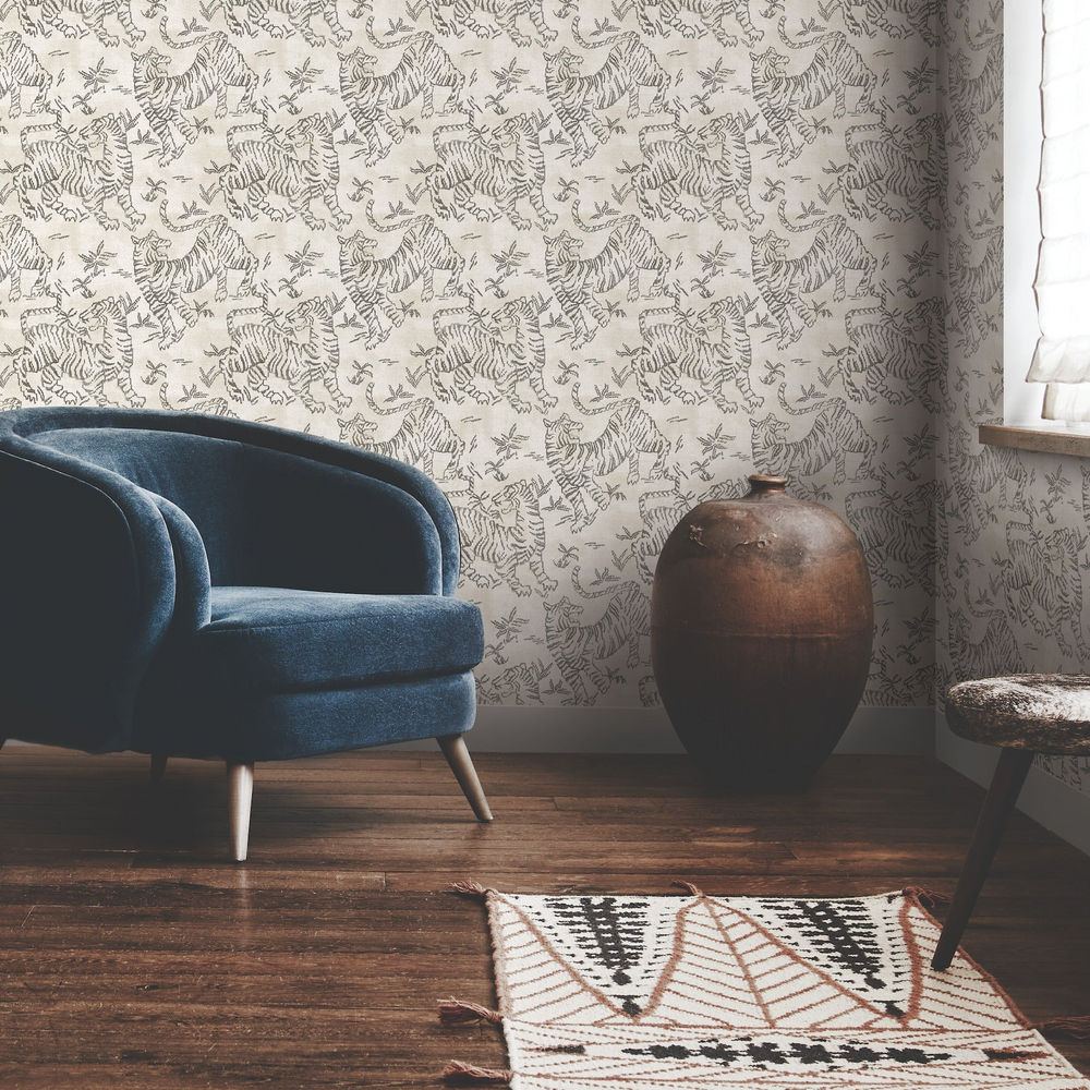 A linear tropical wallpaper in soft shades of black and white is both a classic and clean design that works well in any space. This wallpaper washable. (Available in additional color ways on our website.)