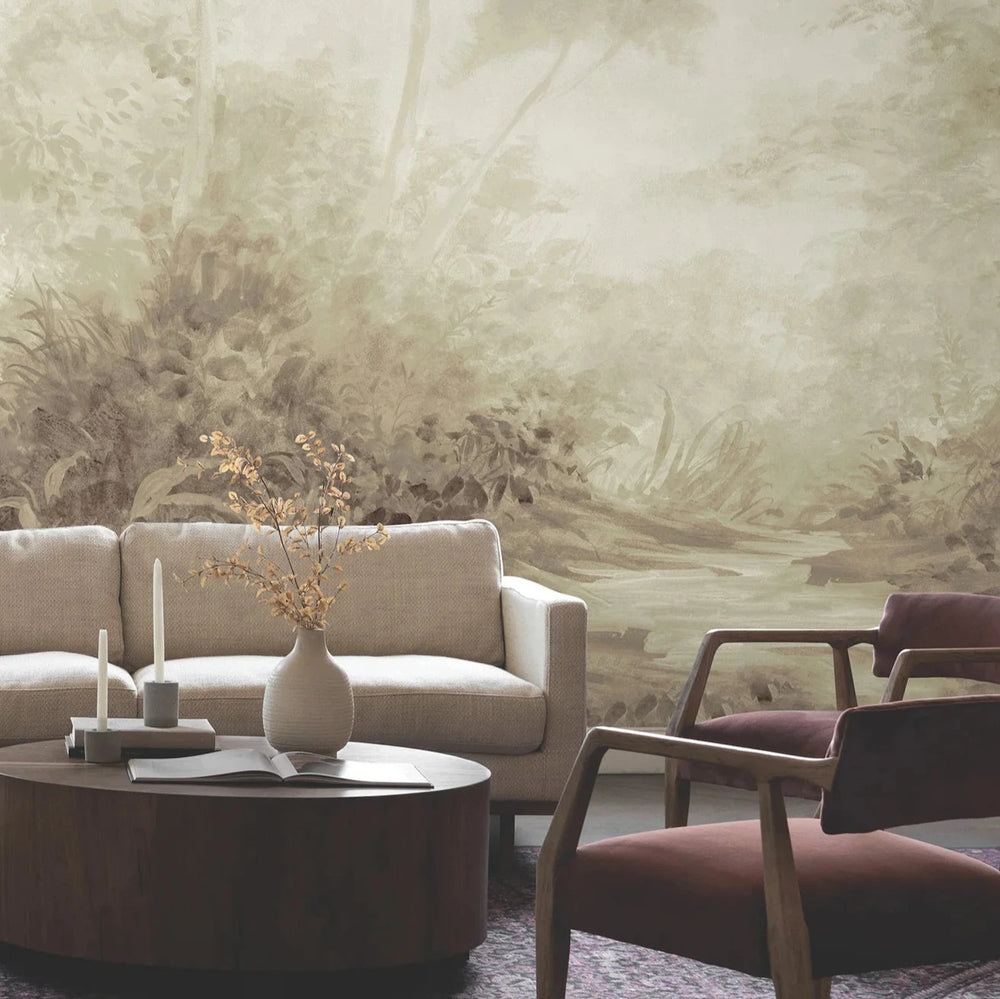 With a rich honey hue and a design inspired by a 1930s steamliner, this mural blends vintage charm with modern convenience. Originally hand-painted, it is now digitally printed for fast lead times and offered in five heights with up to four non-repeating panels.
